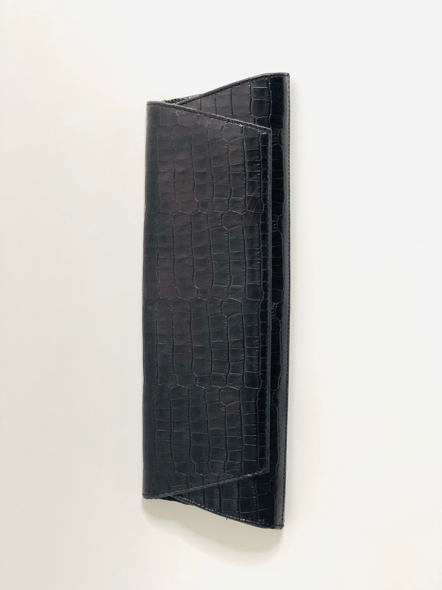 • Features: Alligator Print, Magnetic Closure, Genuine Leather Color: Black