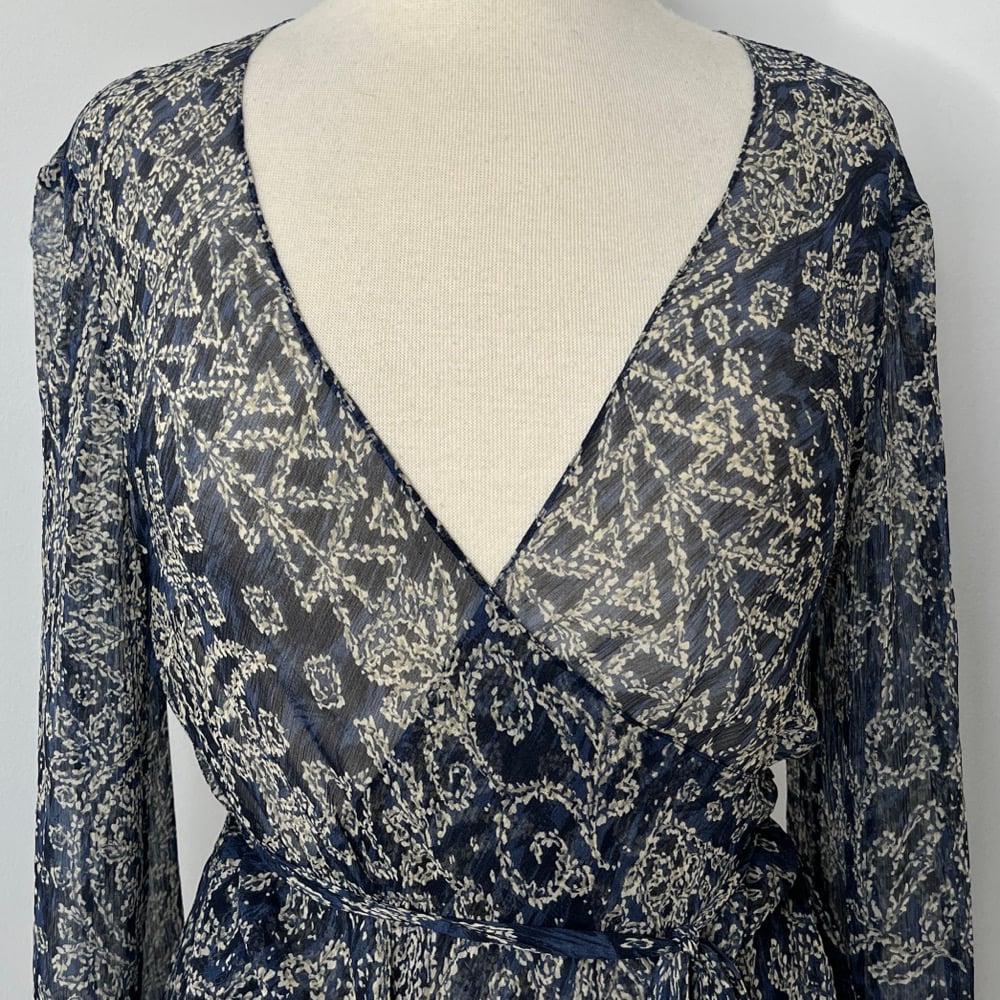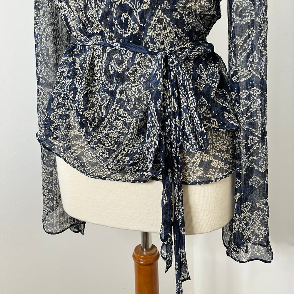 • DETAILS: Silk/Navy Blue/Sheer/Split Sleeve