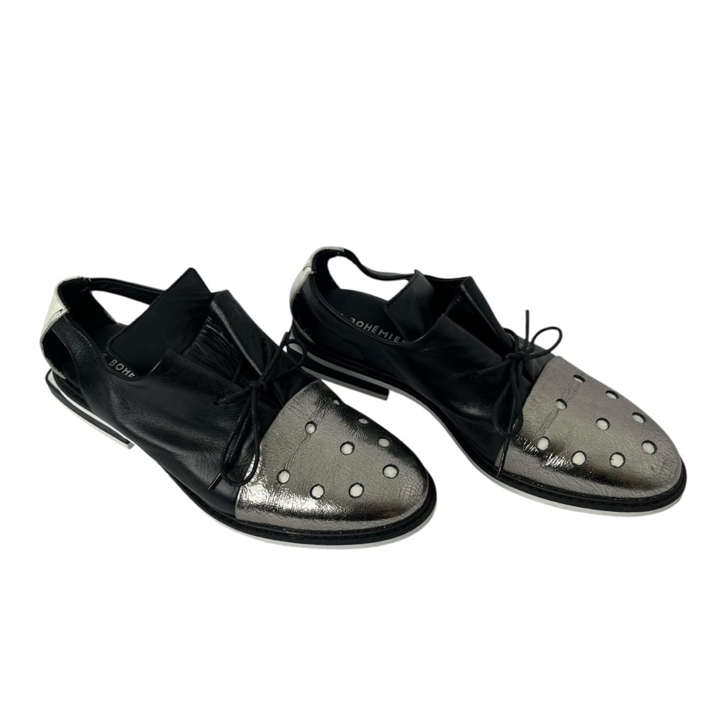 • DETAILS: Metallic Leather/ Cut Out Heel/Slip On