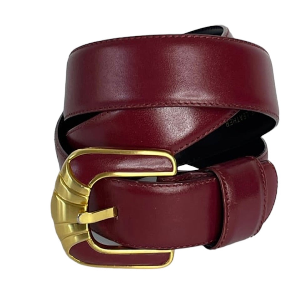 • DETAILS: BURGANDY, GOLD-TONE METAL, GENUINE LEATHER