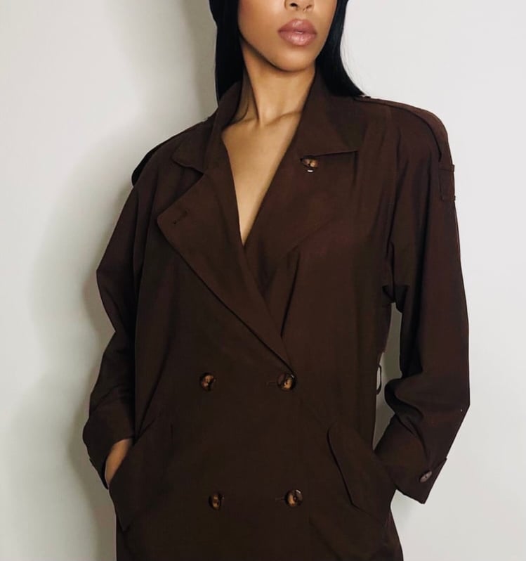 • DETAILS: Color: Milk Chocolate/ Shoulder Pads, Marbled Buttons