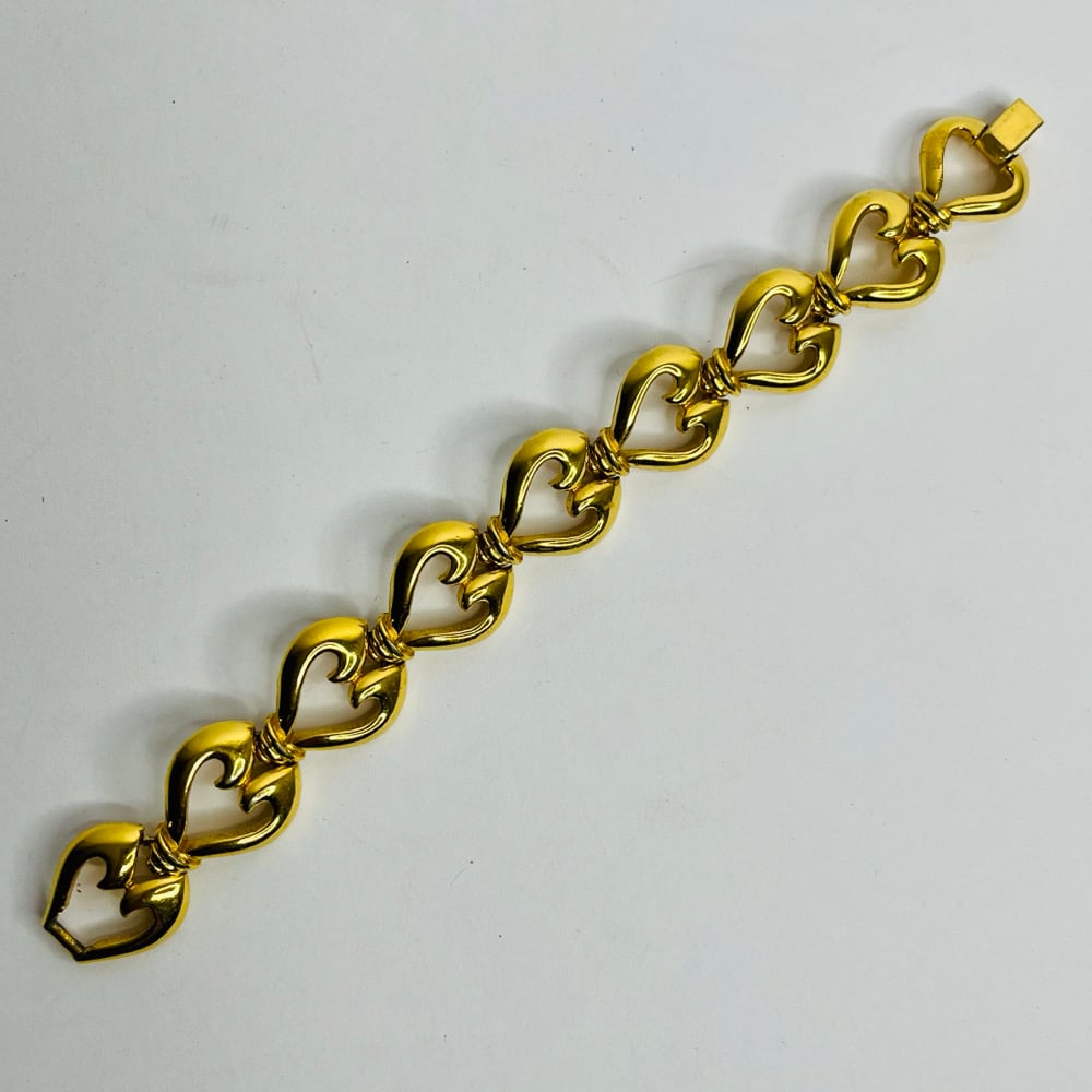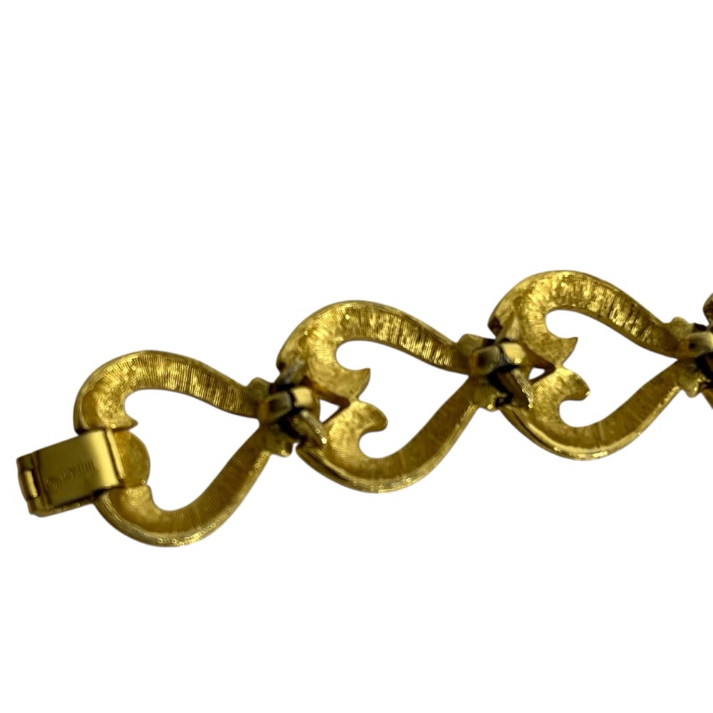 Vintage Crown Trifari Gold Tone Linked Hearts Bracelet